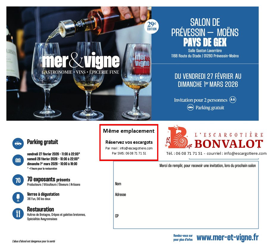 Venez nous retrouver sur nos stands, nous vous accueillerons avec plaisir, et venez goûter notre soupe gauloise aux escargots et aux orties sauvages, nos salades d'escargots…